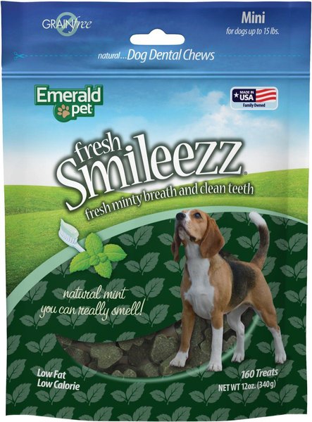 Emerald Pet Fresh Smileezz Mini Grain-Free Dental Dog Treats, 160 count