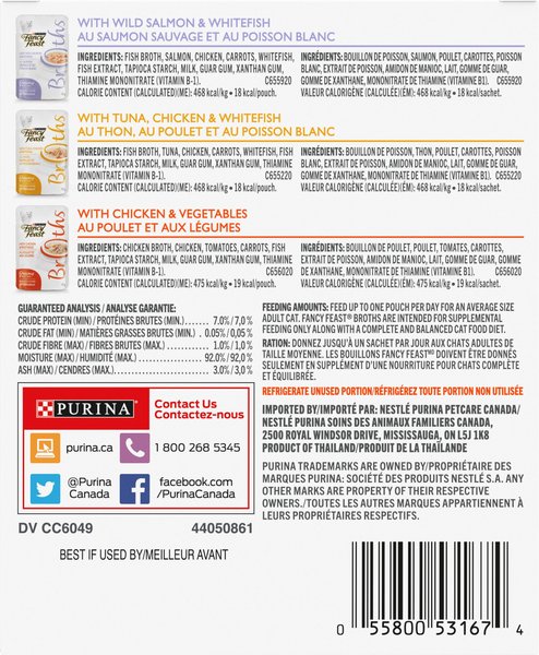 Fancy Feast Creamy Broths Collection Variety Pack Cat Food Complement, 40-g pouch, case of 12