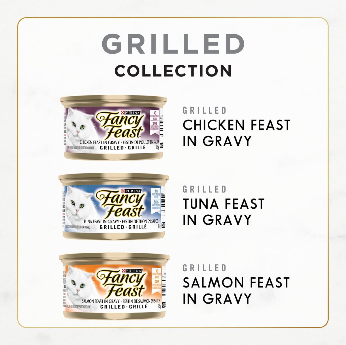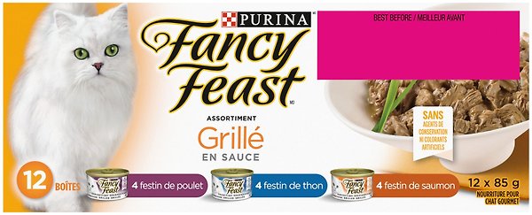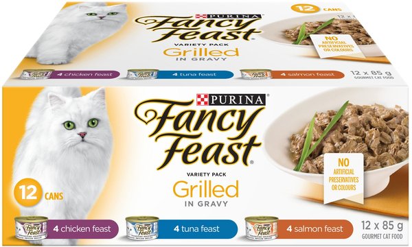 Fancy Feast Grilled in Gravy Tuna, Salmon & Chicken Variety Pack Wet Cat Food, 85-g can, case of 12