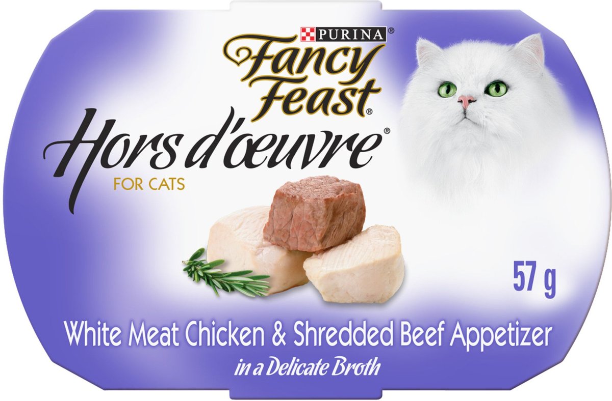 Fancy Feast Hors d'Oeuvre White Meat Chicken & Shredded Beef Appetizer Cat Food Complement, 57-g pouch, case of 10