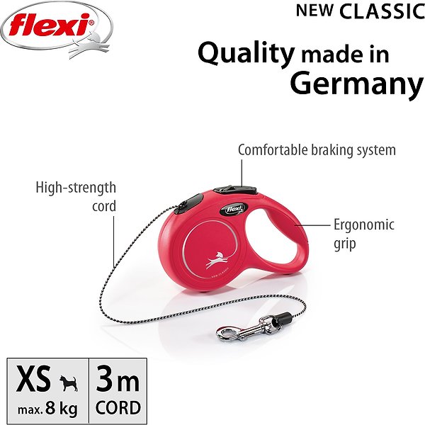 Flexi Classic Nylon Cord Retractable Dog Leash, Red, X-Small: 3-m long