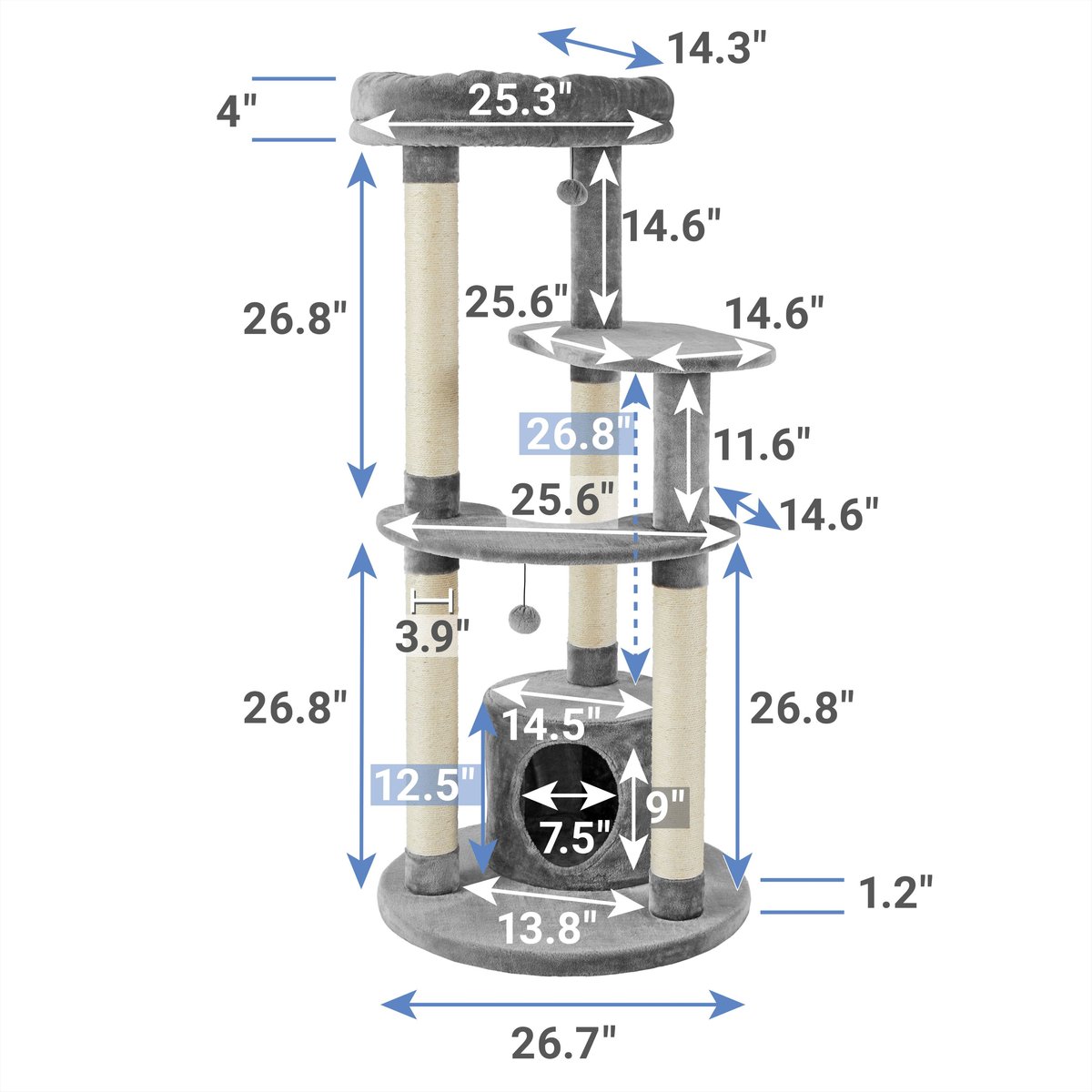 Frisco 59.5-in Heavy Duty Faux Fur Cat Tree & Condo, Gray
