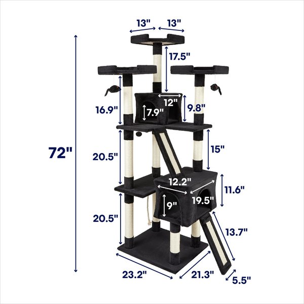Frisco 72-in Faux Fur Cat Tree & Condo, Black