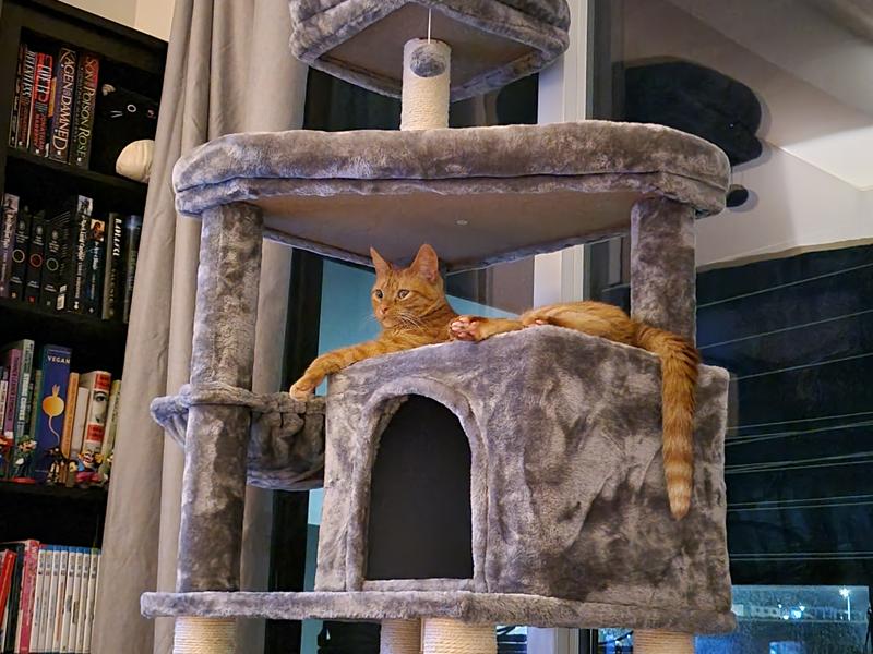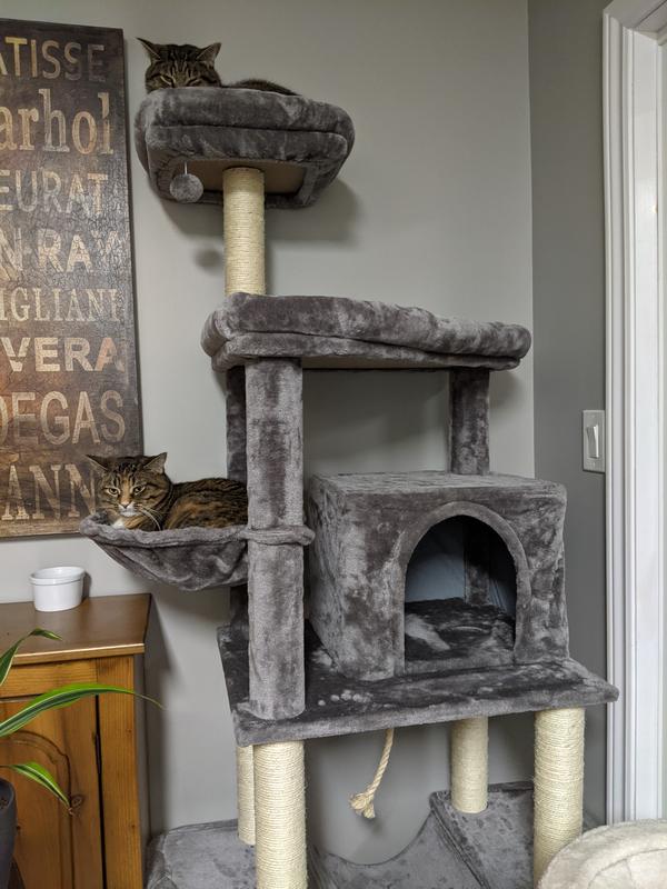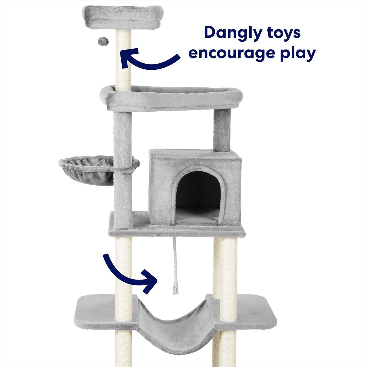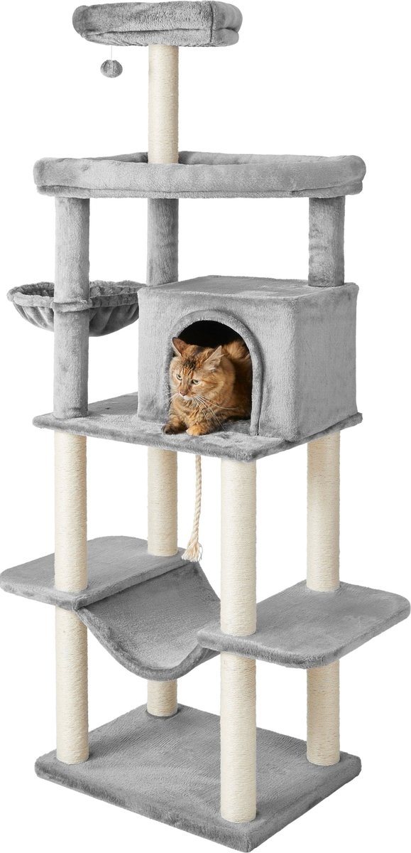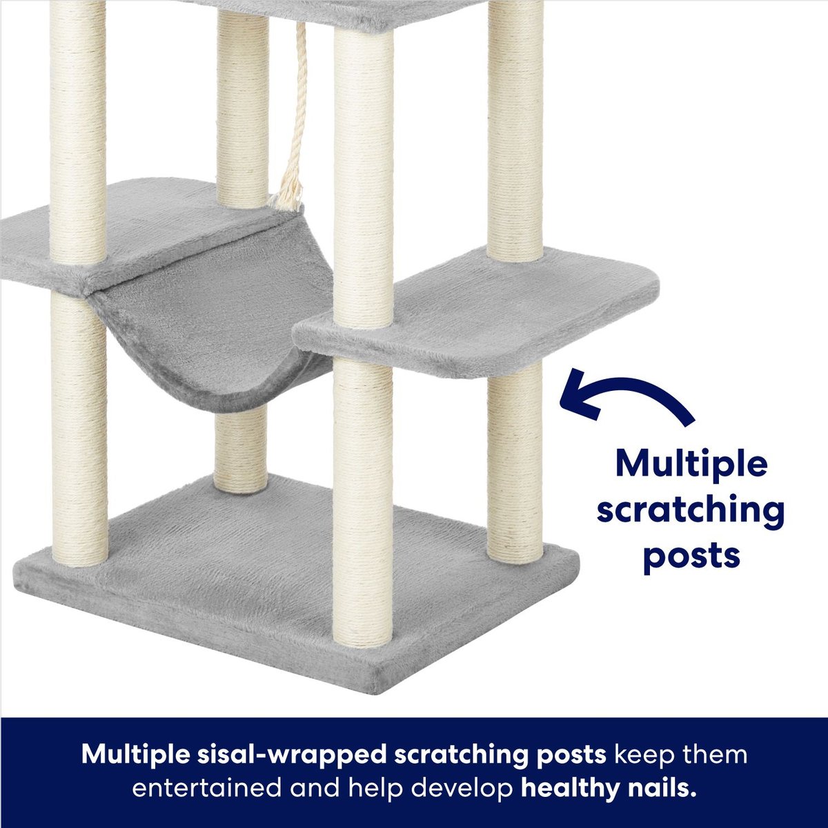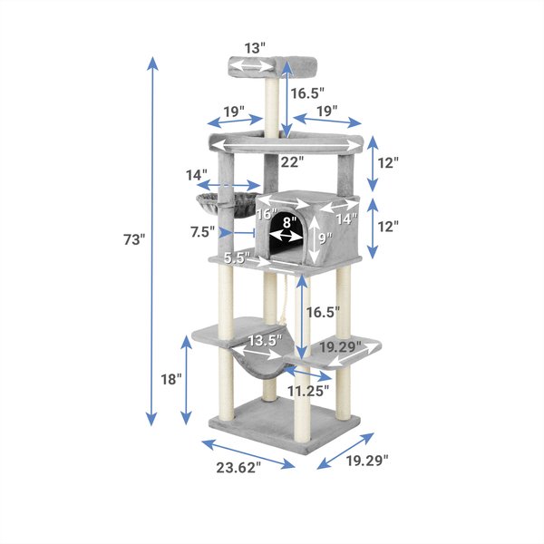 Frisco 73-in Cat Tree with Hammock, Condo, Lounge Basket, Top Perch and Bed, Gray