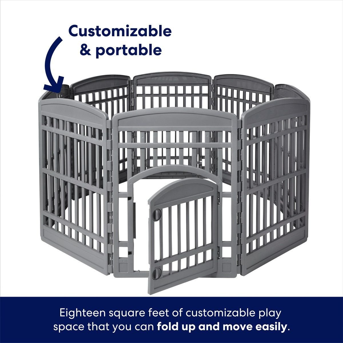 Frisco 8 Panel Plastic Dog Exercise Playpen with Door, 34-in H, Gray