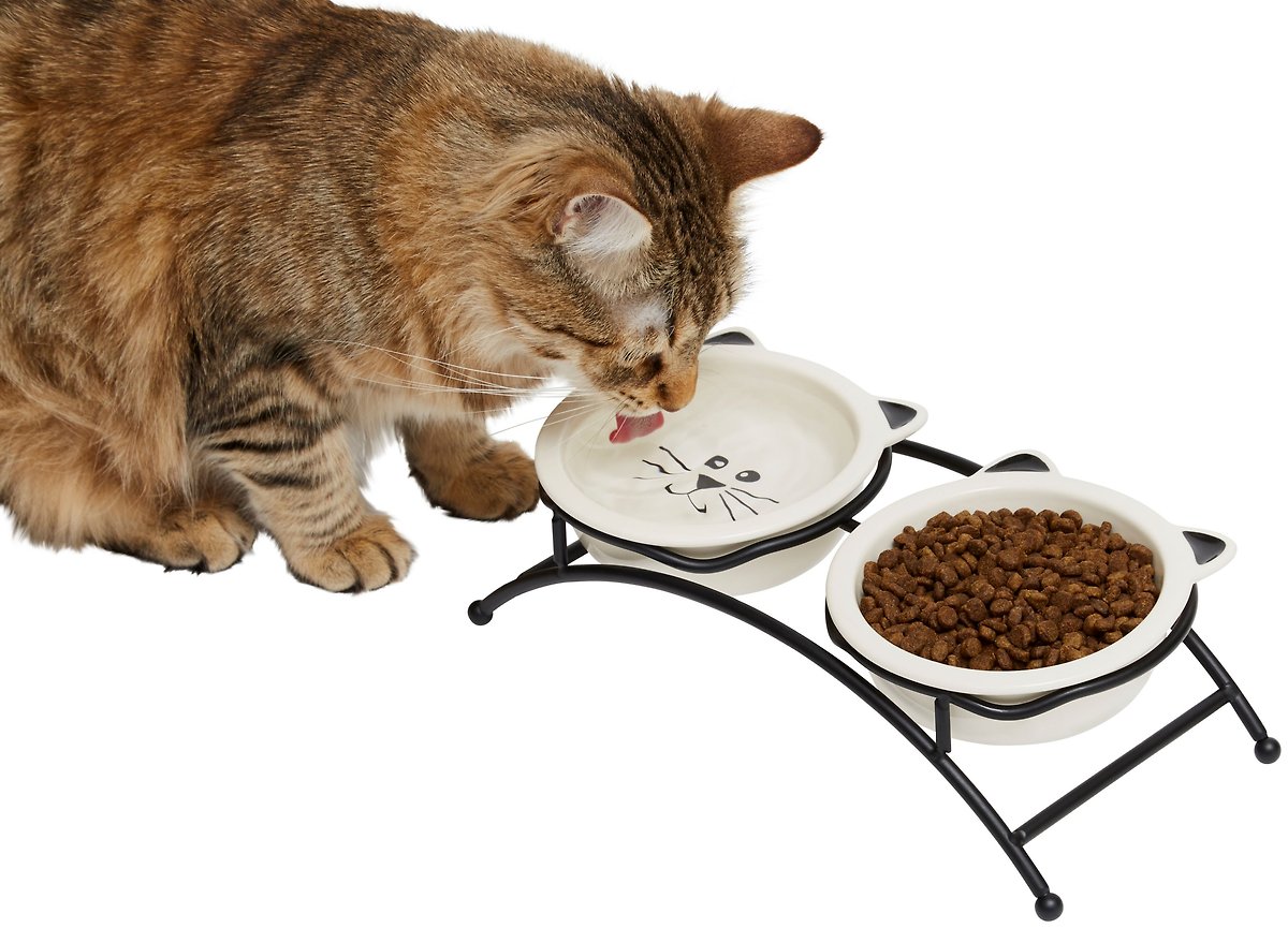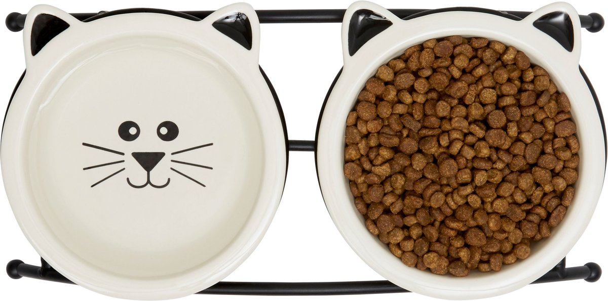 Frisco Cat Face Non-skid Elevated Double Ceramic Cat Bowl, 0.5 cup
