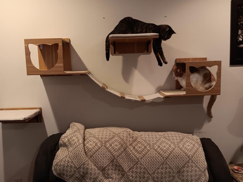 I added 2 of the Frisco cushioned cat shelves along with this bridge to complete my cat climbing wall. My cats love this, and that makes me happy! They like to climb up and survey their territory, then settle in for a nap. Sometimes when they are playing chase with each other, they will jump on the bridge as part of the game.