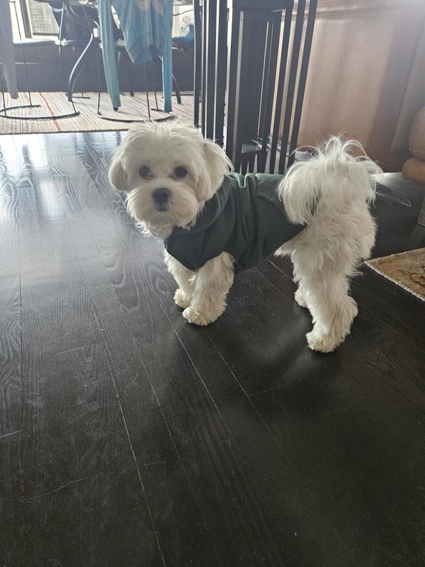 I like this hoodie for my dog. It does not have sleeves so It is easy to put on and I do not have to worry about them getting dirty.
