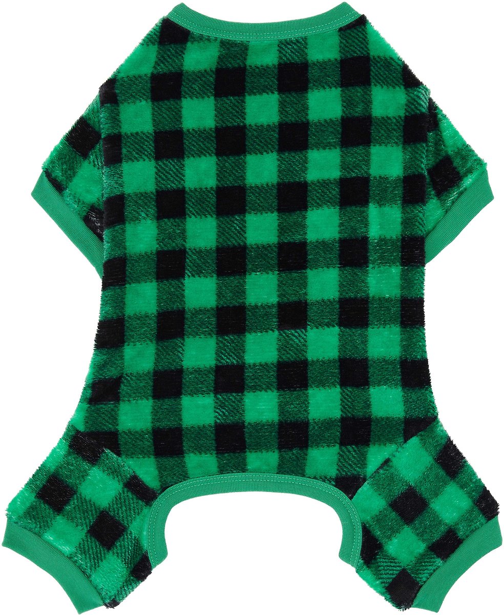 Frisco Dog & Cat Cozy Plush Fleece PJs, Green Plaid, X-Large