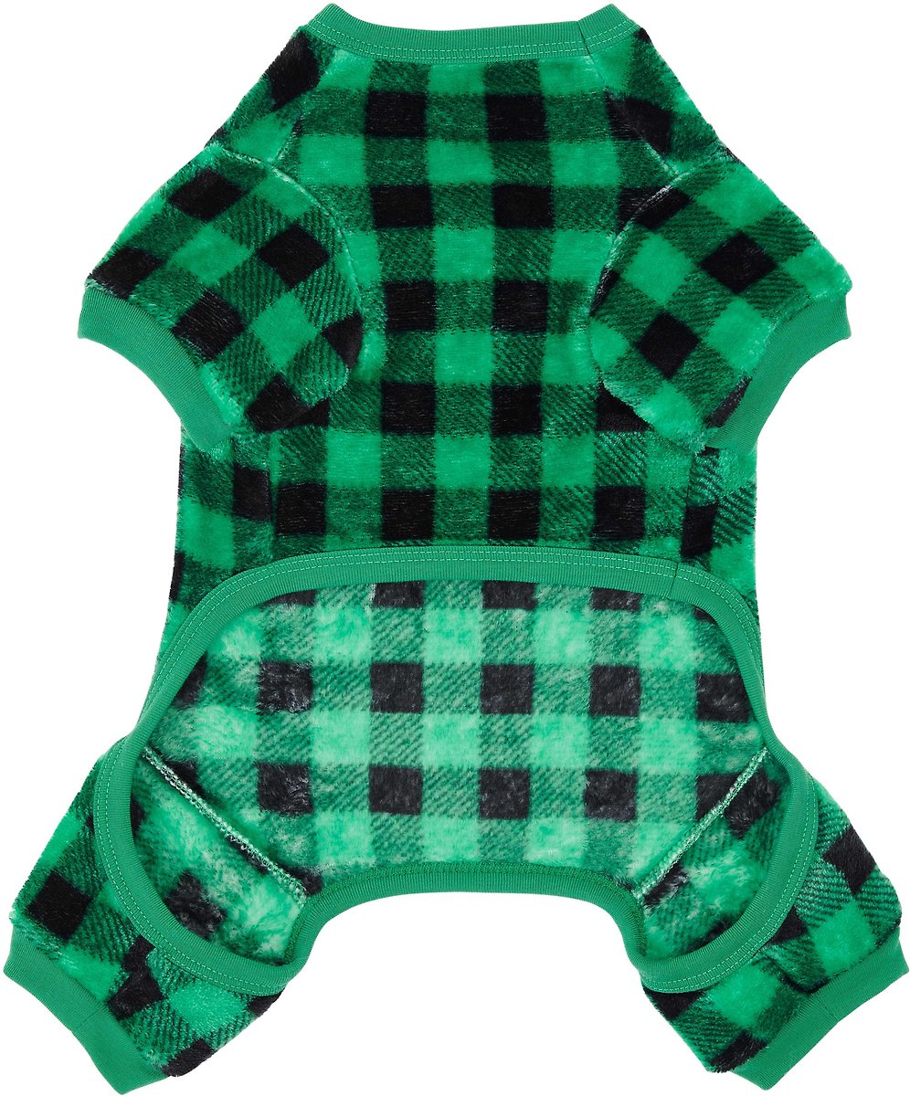 Frisco Dog & Cat Cozy Plush Fleece PJs, Green Plaid, XX-Large