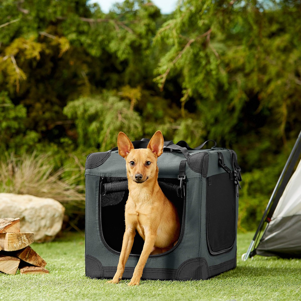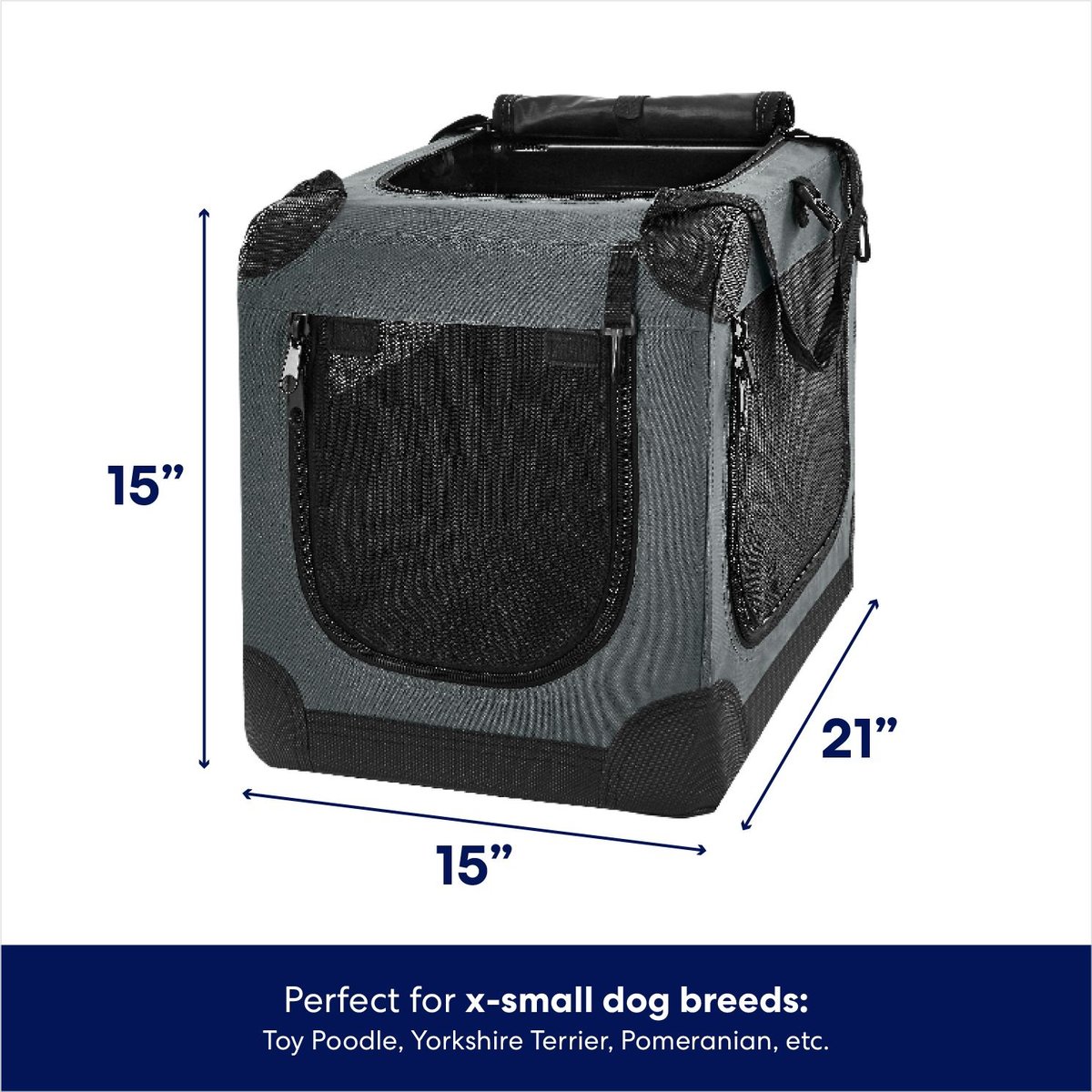 Frisco Dog & Small Pet Indoor & Outdoor 3-Door Collapsible Soft-Sided crate, Dark Gray, XS: 21-in L x 15-in W x 15-in H