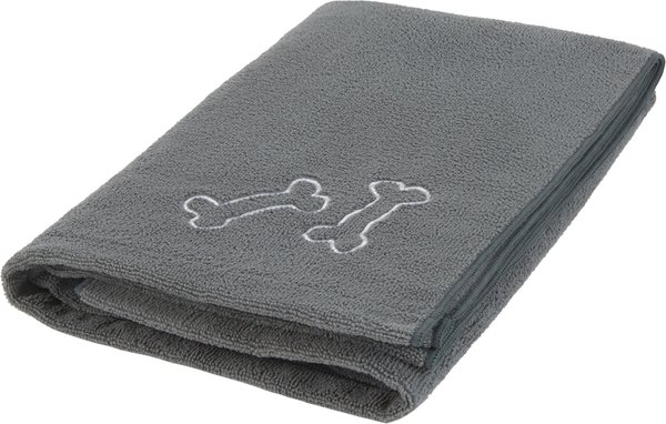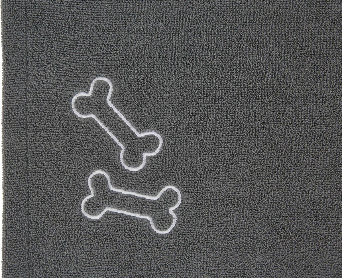 Frisco Embroidered Bones Microfiber Dog Bath Towel, Gray, Large