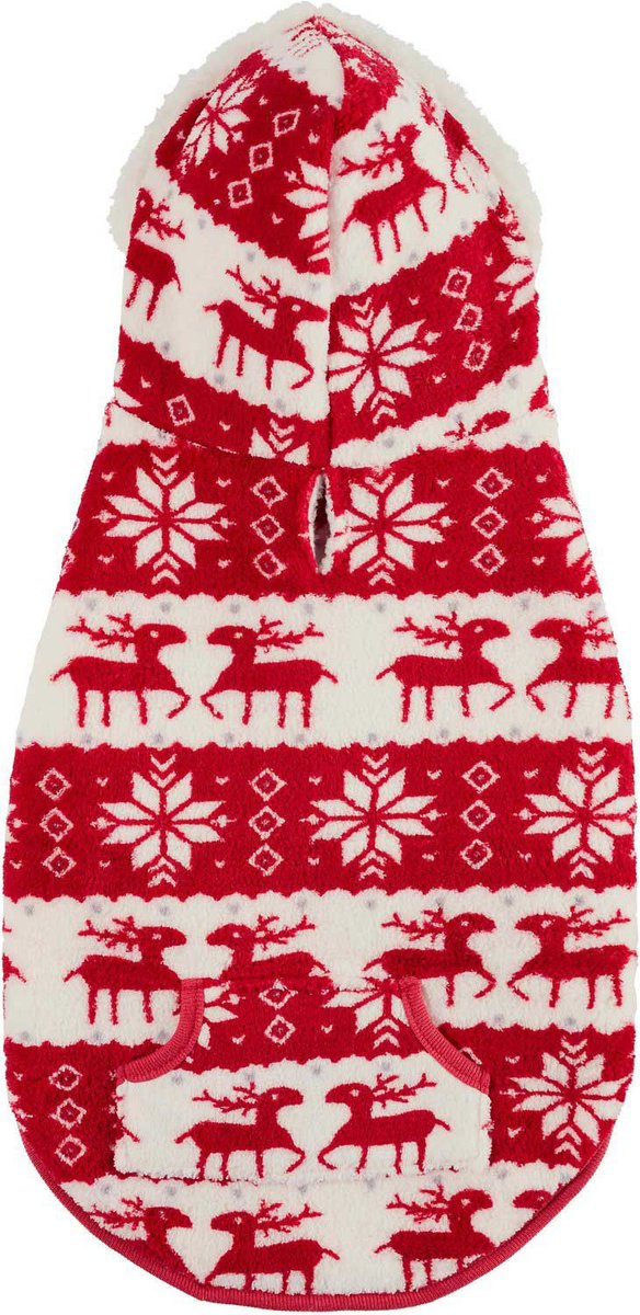 Frisco Fair Isle Fleece Lined Dog & Cat Hoodie, Red, X-Small