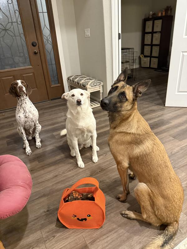 [This review was collected as part of a promotion.] The Halloween Boo Basket was amazing. There were so many different types of toys that all 3 of my dogs were able to enjoy! The quality of the basket was great! It was a thick felt that held up in shape. My dog that loves balls really enjoyed the two balls. My other dog loved the skeleton crinkle bottle toy and my 3rd dog would carry the basket around in his mouth! Highly recommend!