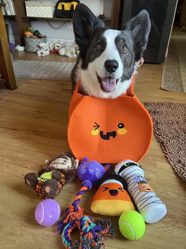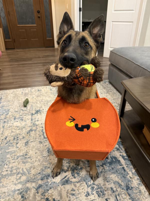 - This Halloween Boo Basket provides a variety of ways for your pup to play, wrapped up in an orange felt bag with a smiling pumpkin face that’s great for gifting.