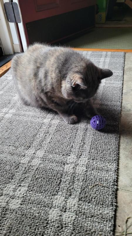 [This review was collected as part of a promotion.] Great toy if you have a kitty that likes to play fetch or carry their toys around in their mouth. The lattice texture is easy for them to hold and the ball bounces nicely for a game of fetch. It’s also a large, non-choking risk size. They are heavier toys so my more timid cat was a bit afraid of the sound it made when bouncing. Overall a fun addition to our toy box!