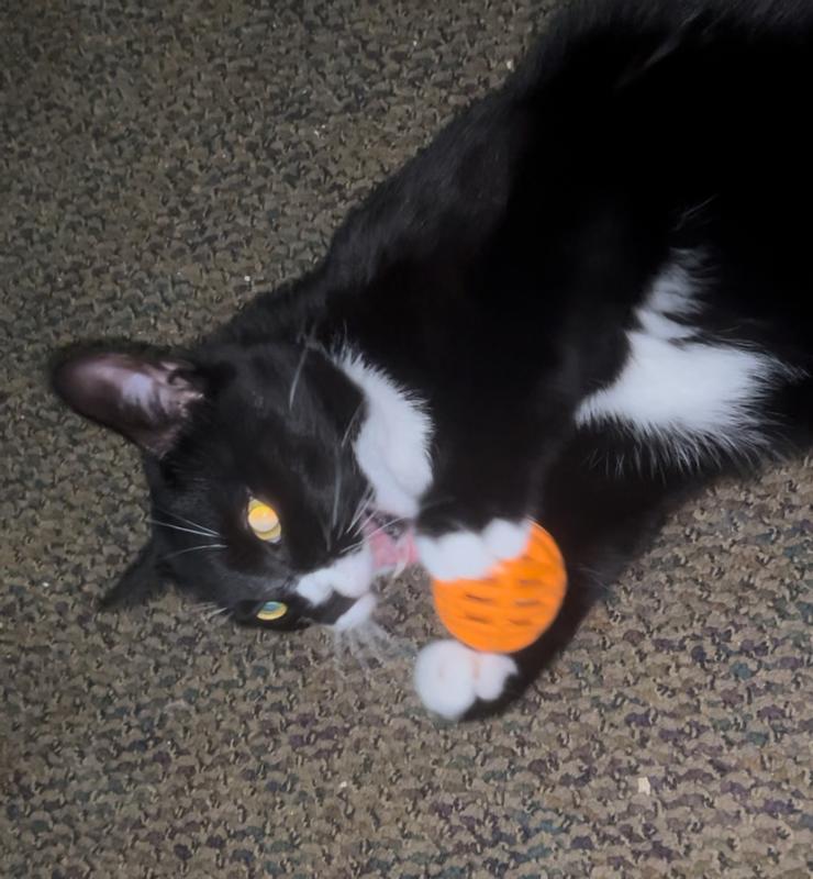 [This review was collected as part of a promotion.] My cat wasn’t very interested in them. He loves anything that makes a crinkly sound so I thought they would enjoy this. I noticed you couldn’t really hear the crinkle of the purple ball. I gave this to our small chihuahua who seems more interested in chasing after it. As for the orange ball, he’s never really been drawn to catnip so he didn’t play much with it.