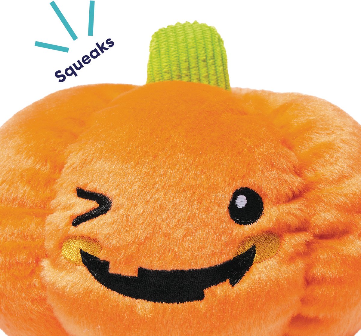 [This review was collected as part of a promotion.] This Halloween plushie is very cute. It is a nice size (large enough to cuddle, small enough to carry around). It has a squeaker, but my dog doesn't really care about that. She likes to move her things around (blankets, toys) and leave toys here and there to mark her territory. The fact that my dog is 14 but fell in love with a pumpkin was so surprising and cute! She loved it from the moment we opened the box. I like that the toy is fun without being too tacky.