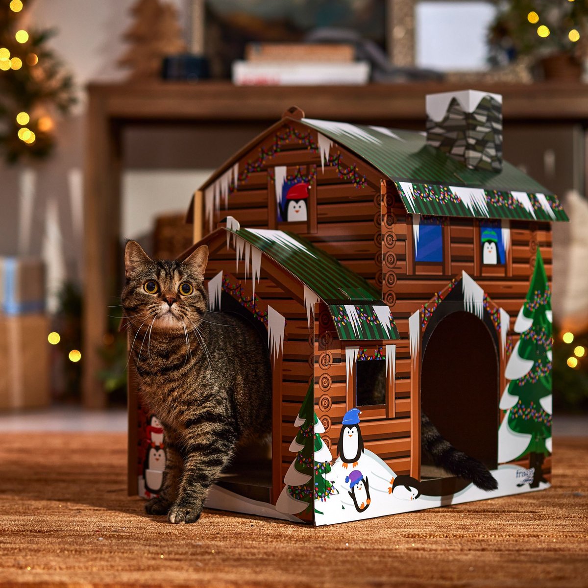 Frisco Holiday Log Cabin Cardboard Cat House