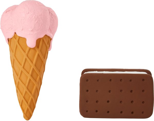 Frisco Ice Cream Sandwich & Ice Cream Cone Latex Squeaky Dog Toy, 2 count