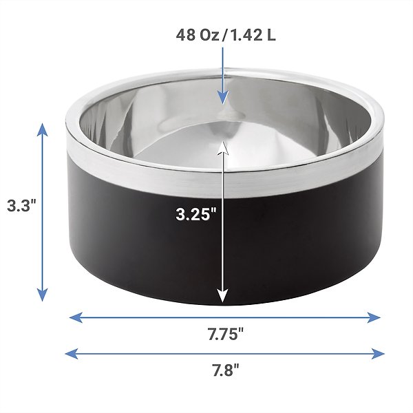 Frisco Two-Toned Double Wall Insulated Dog & Cat Bowl, Black, 6 cup, 1 count