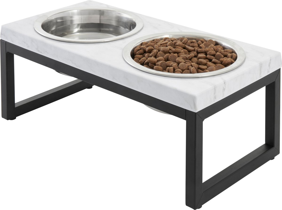 Frisco Marble Print Stainless Steel Double Elevated Dog Bowl, Black Stand, 3 Cup