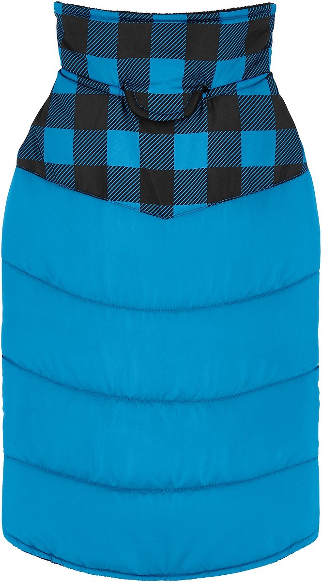 Frisco Mediumweight Boulder Plaid Insulated Dog & Cat Puffer Coat, Blue, Small