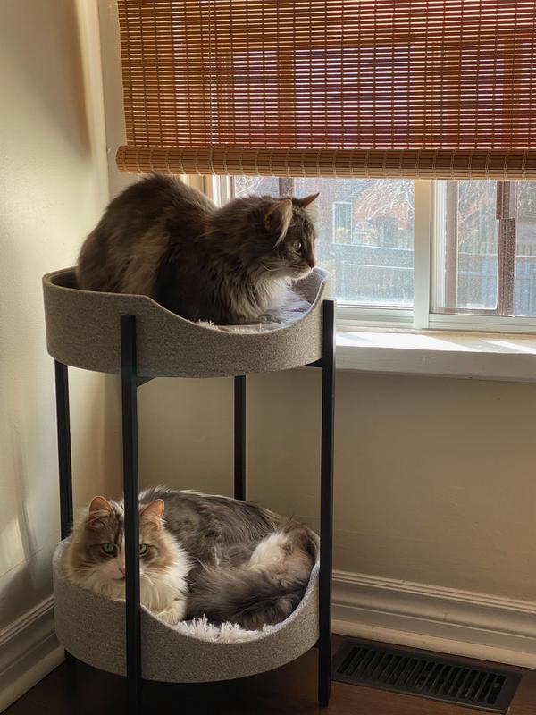 Frisco Modern Elevated Wrought Iron Cat Bed with Eyelash Cushion, Two Tier