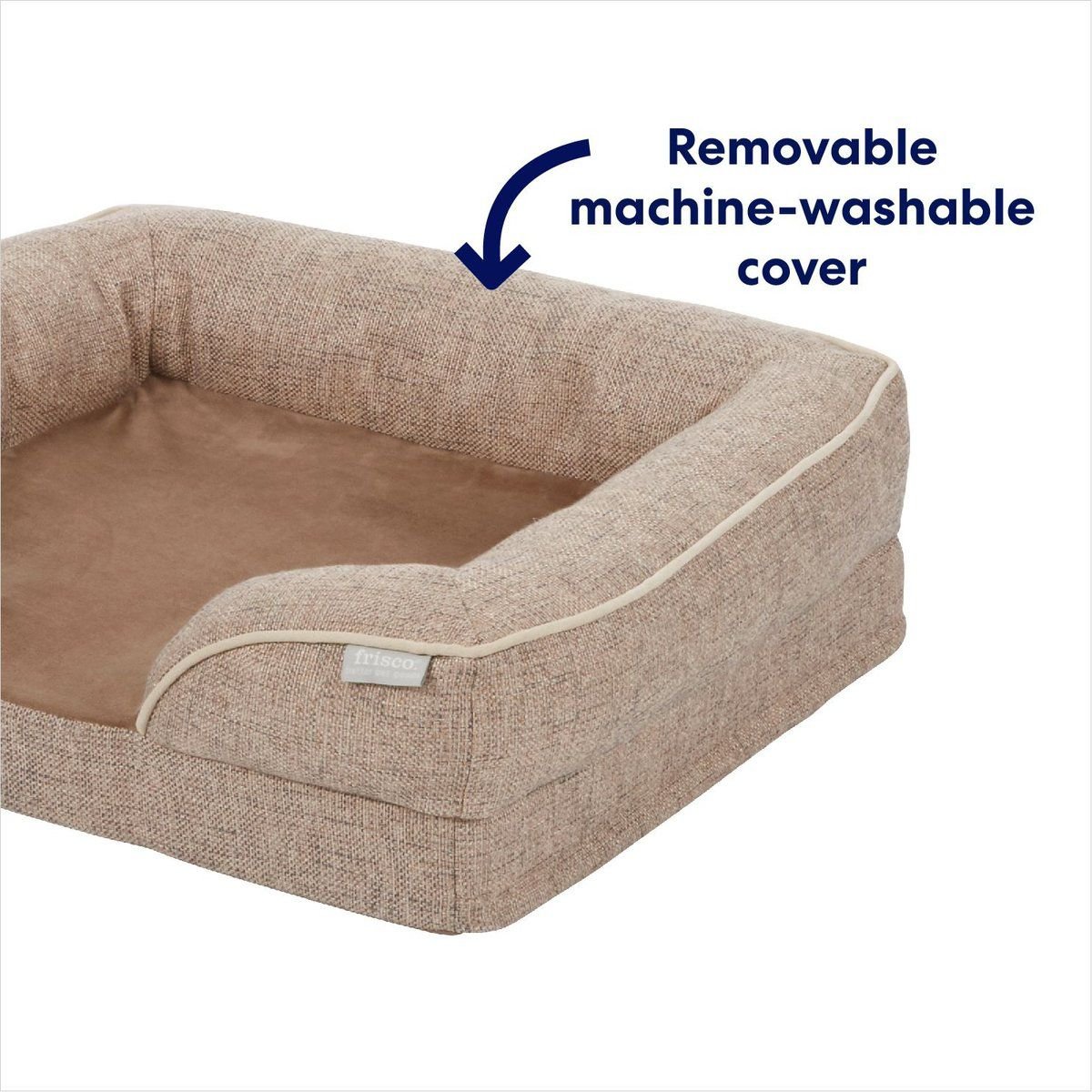 Frisco Plush Orthopedic Front Bolster Cat & Dog Bed w/Removable Cover, Beige, Medium