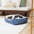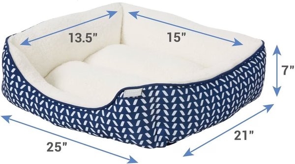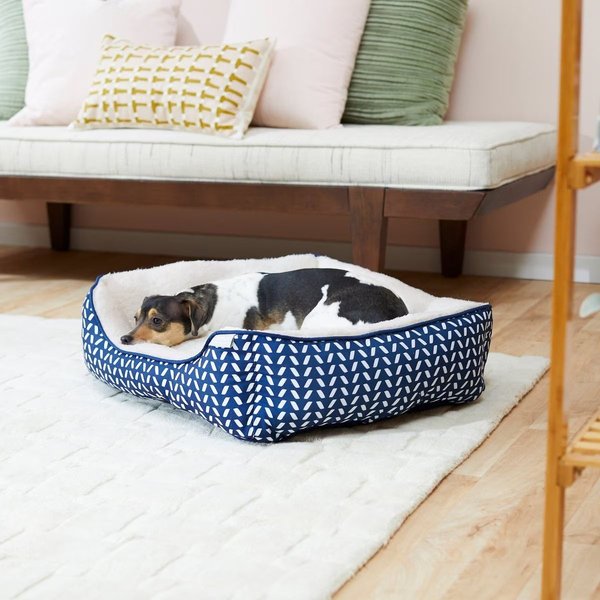 Frisco Sherpa Rectangular Bolster Cat & Dog Bed, Navy Herringbone, Medium