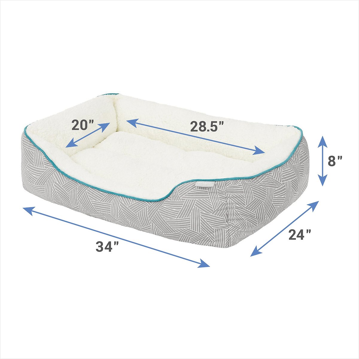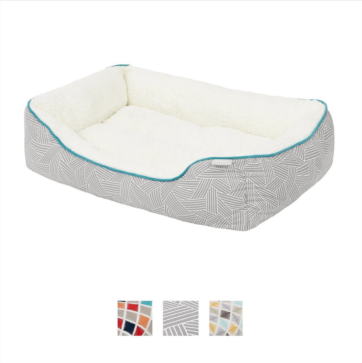 Frisco Sherpa Rectangular Bolster Cat & Dog Bed, Gray Basket Weave Print, Large