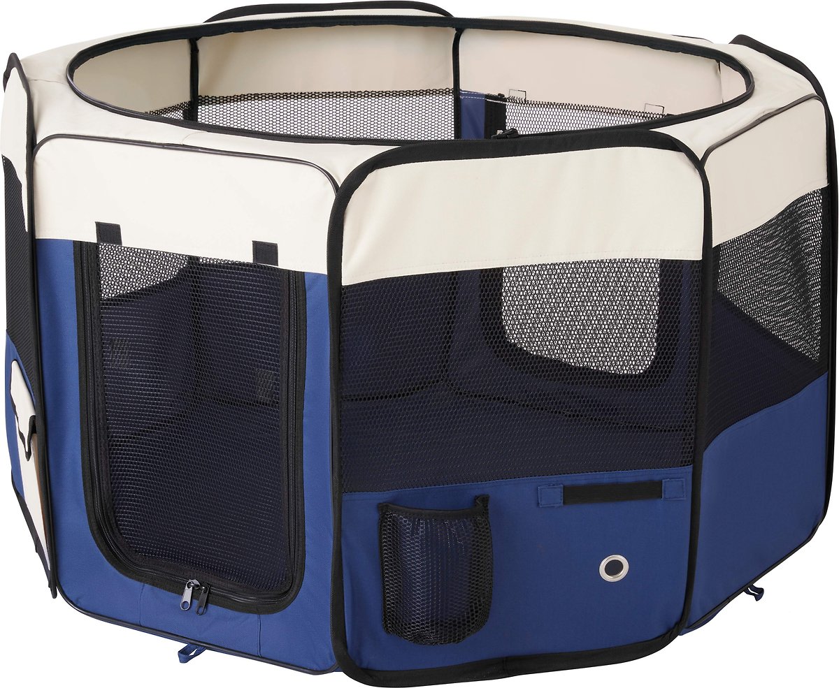 Frisco Soft-Sided Dog, Cat & Small Pet Exercise Playpen, Cream/Navy, 42-in L x 42-in W x 24-in H