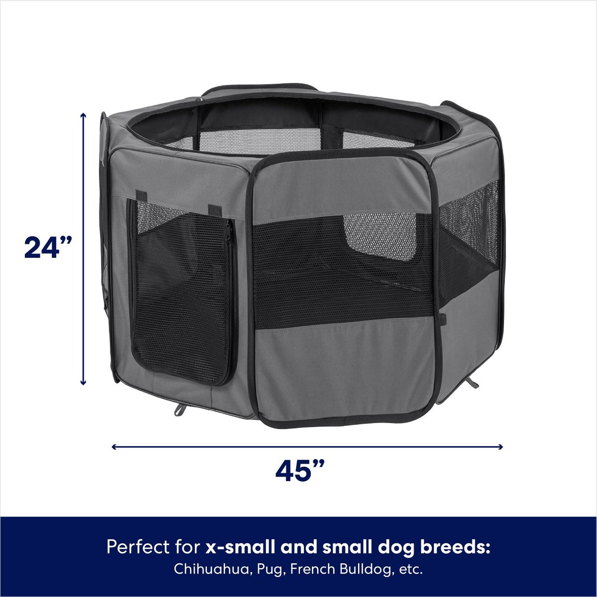 Frisco Soft-Sided Dog, Cat & Small Pet Exercise Playpen, Gray, 42-in L x 42-in W x 24-in H