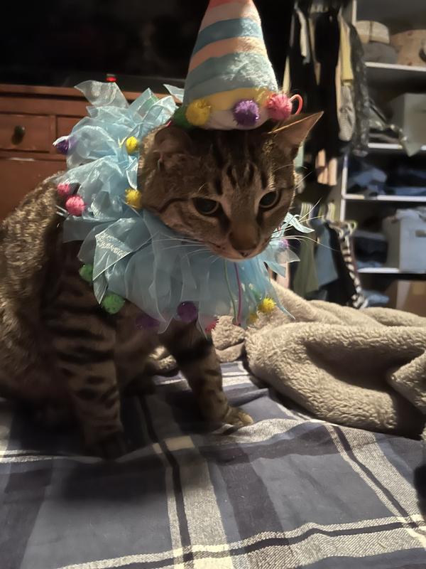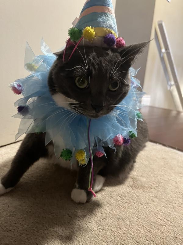 Frisco Striped Party Hat and Ruffle Collar Cat Birthday Costume, One Size