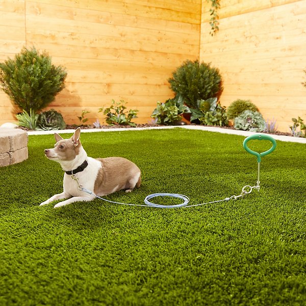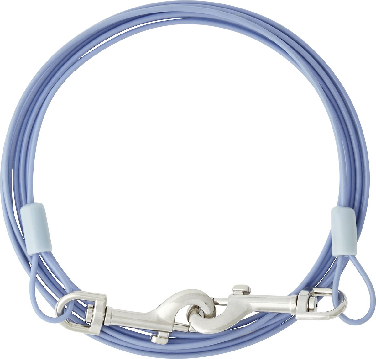 I needed a tie down for the little 9 lb "instigator" who otherwise will beeline across the yard, the street and the neighbor's yard. This cable is light enough for a little dog and I am very glad I found it at Chewy.