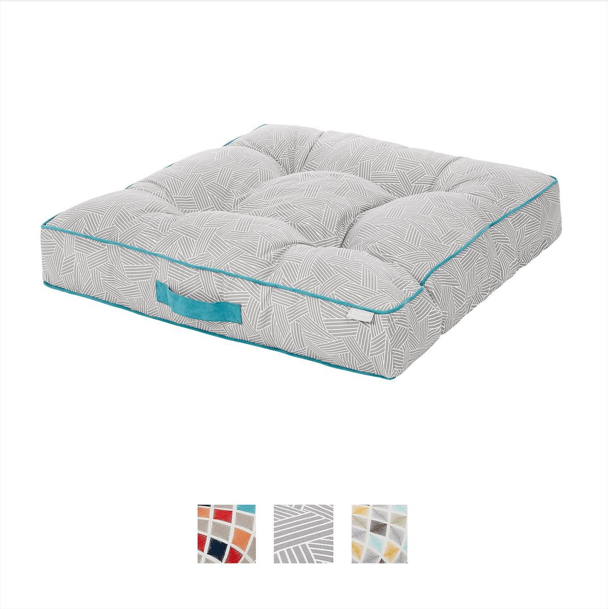 Frisco Tufted Square Orthopedic Pillow Cat & Dog Bed w/Removable Cover, Gray Basket Weave Print, Large