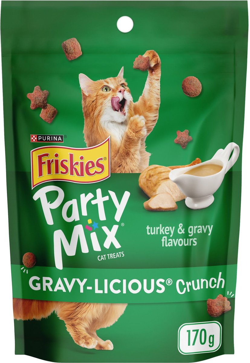 Friskies Party Mix Gravy-licious Crunch Turkey & Gravy Flavours Cat Treats, 170-g pouch