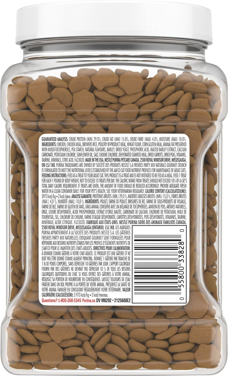 Friskies Party Mix Naturals Gourmet Crunch with Real Chicken Cat Treats, 454-g jar