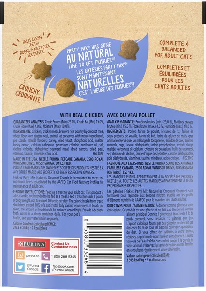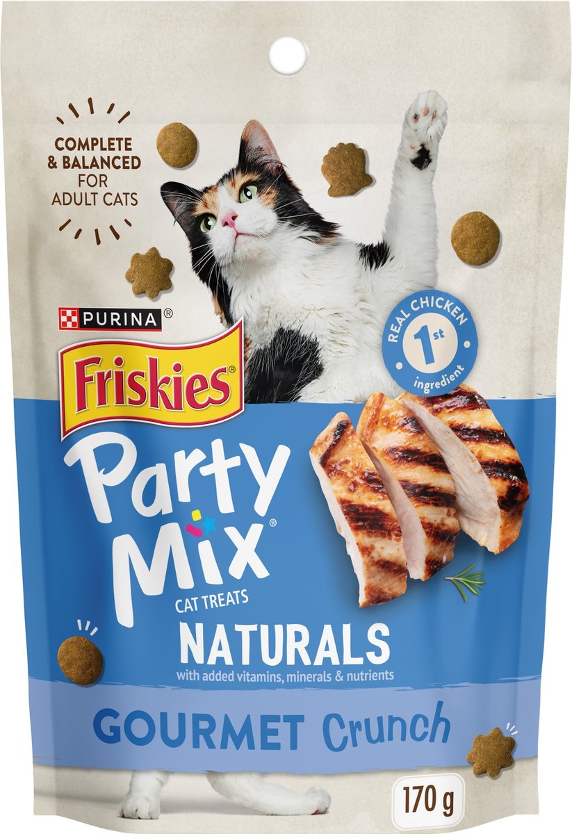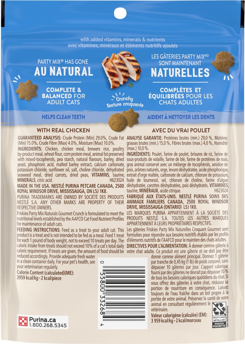 Friskies Party Mix Naturals Gourmet Crunch with Real Chicken Cat Treats, 170-g pouch