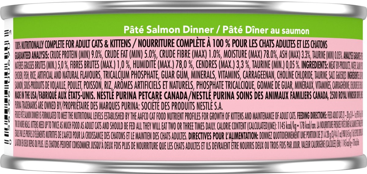Friskies Pate Salmon Dinner Wet Cat Food, 156-g can, case of 24