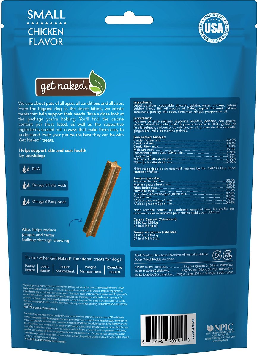 Get Naked Skin & Coat Health Grain-Free Dental Stick Dog Treats, Small, 18 count