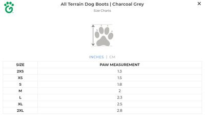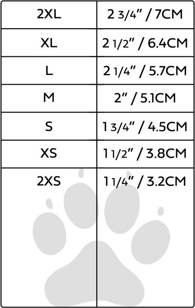 With your dog's paws placed firmly and flat to the ground, measure the length of their paw from front to back, starting at the top of their nails to the back of their paw pad, where the paw stops touching the ground. TIP: If you're finding it difficult to measure, have your dog stand on a sheet of paper, ensuring the paw is flat. Using a pen or pencil, trace a line around their paw(s), then use a ruler to measure the length, from the point marking the front of the nails to the back of the paw pad. We suggest measuring both the front and back paws, as some dogs' hind paws are noticeably different in size than their front paws.