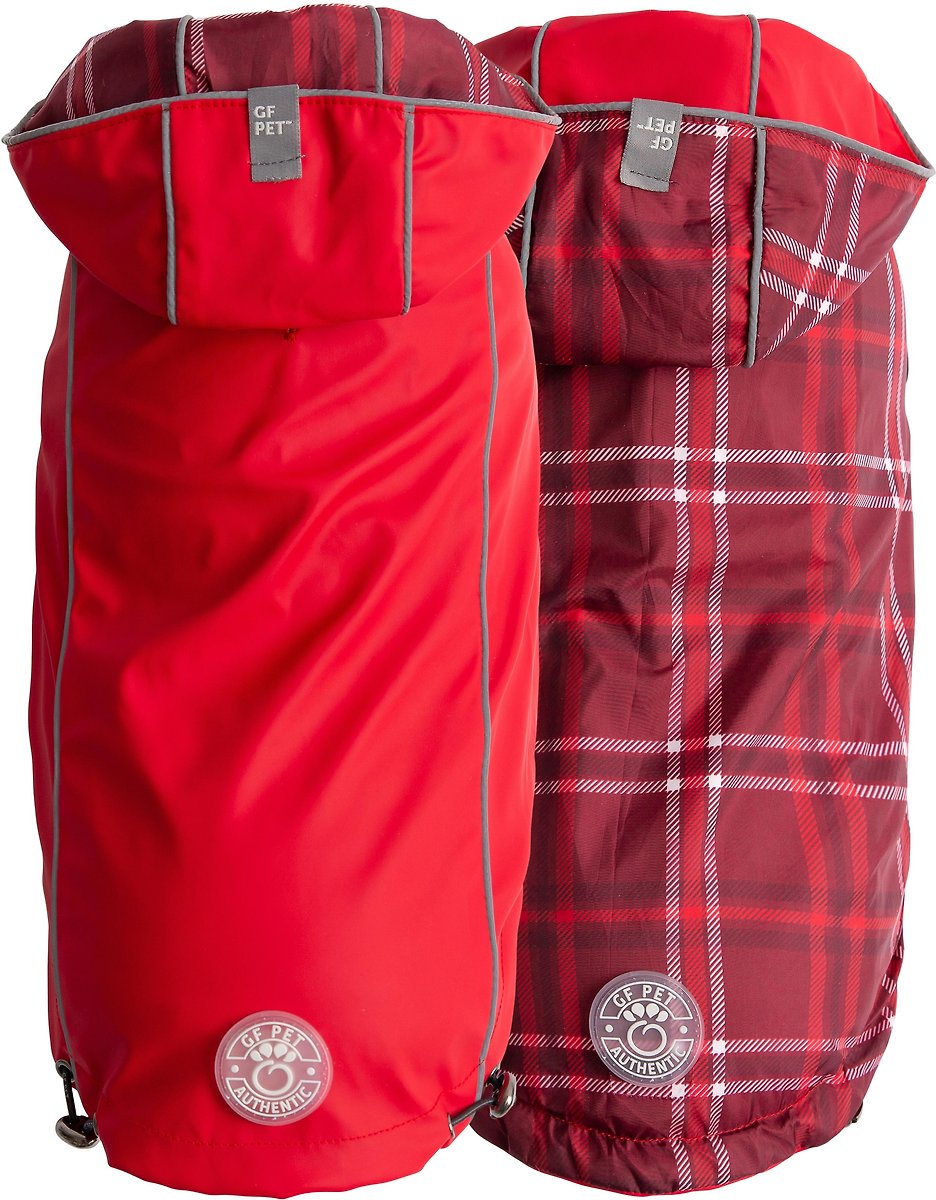 GF Pet Elasto-Fit Reversible Dog & Cat Raincoat, Red/Plaid, XXX-Large