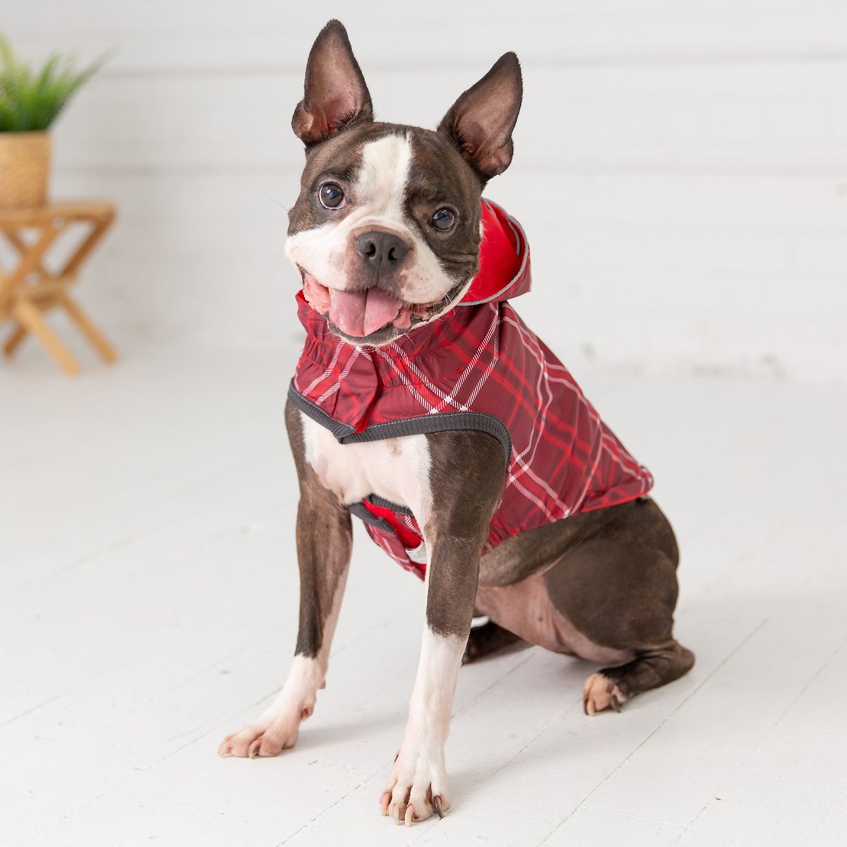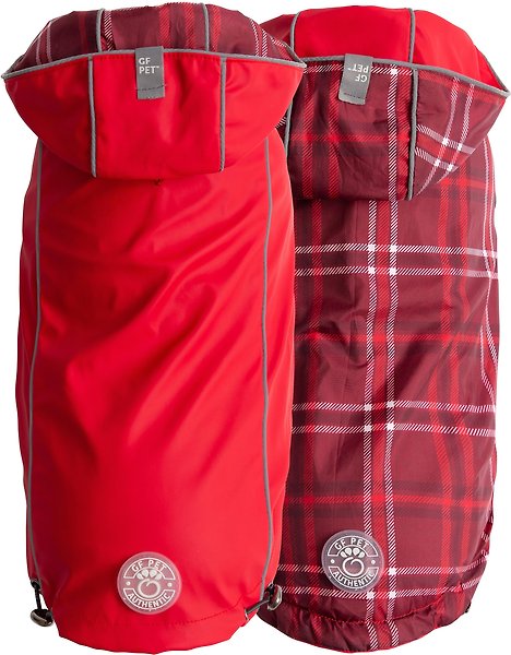 GF Pet Elasto-Fit Reversible Dog & Cat Raincoat, Red/Plaid, Large