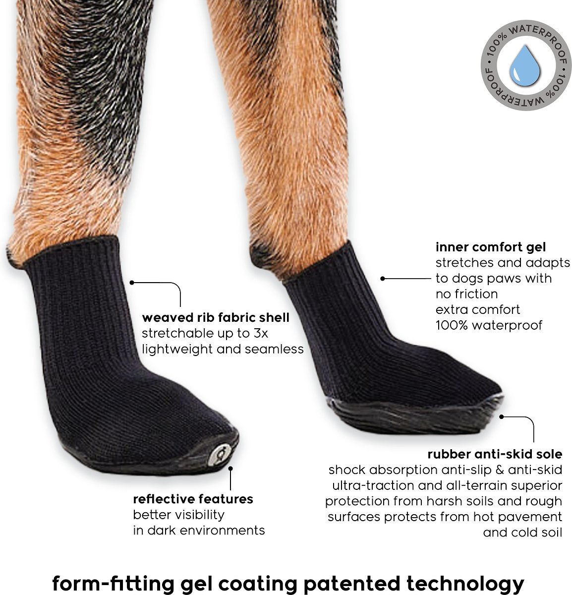- Waterproof design protects paws in all kinds of weather.