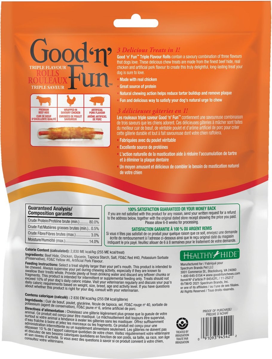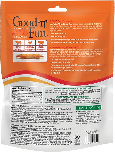 Good 'n' Fun Triple Flavour Rolls 7" Dog Treats, 6 count