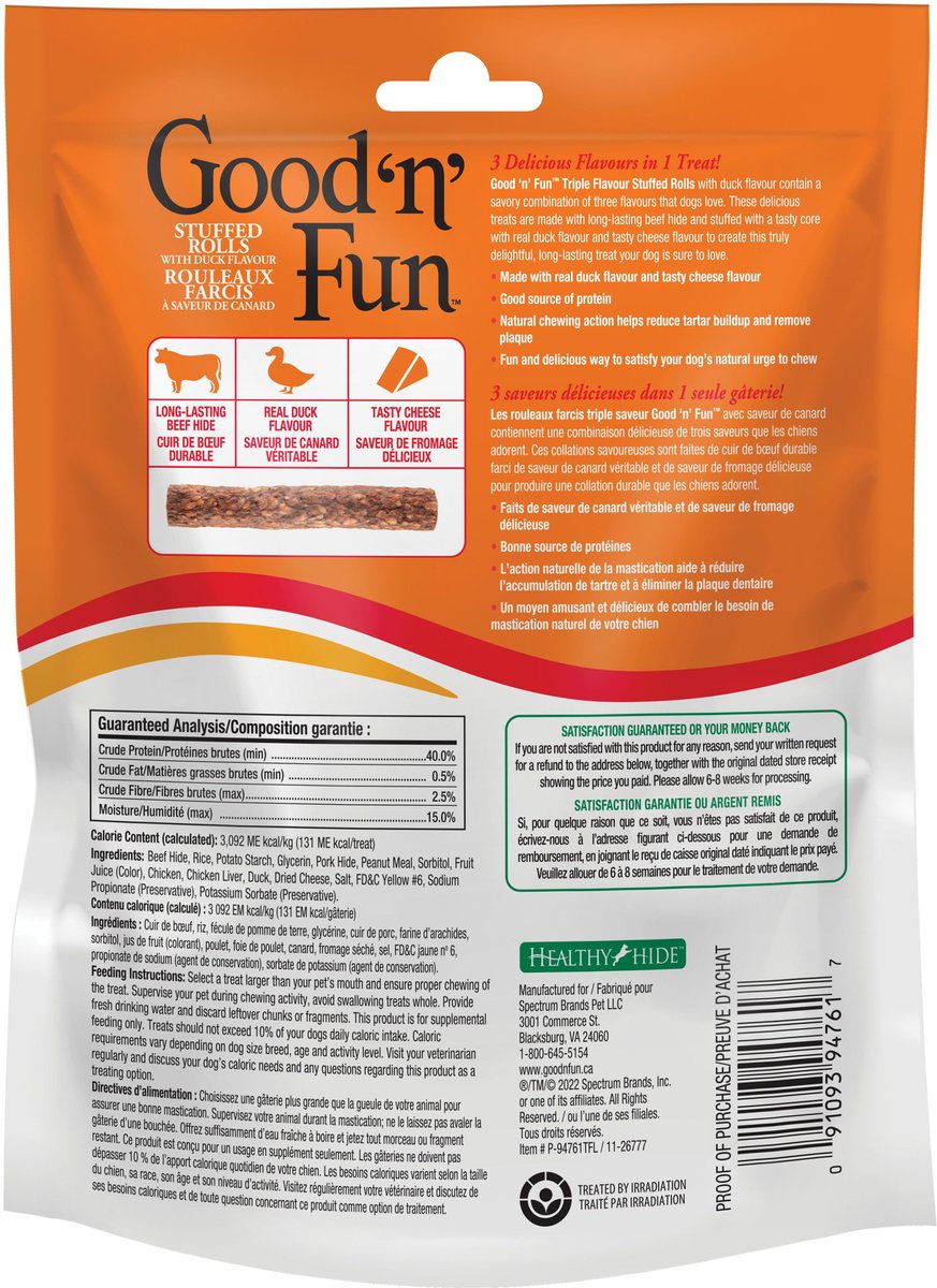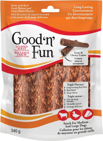 Good 'n' Fun Triple Flavour Stuffed Rolls with Duck Flavour Dog Treats, 340-g bag