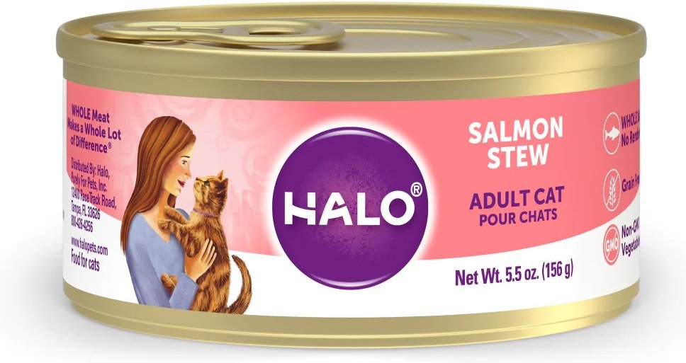 Halo Salmon Stew Adult Grain-Free Wet Cat Food, 5.5-oz can, case of 12