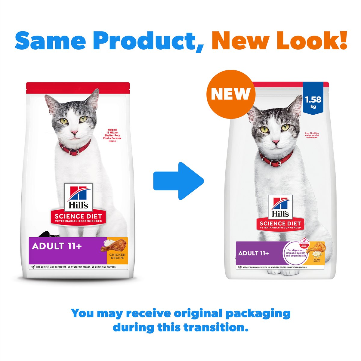 Hill's Science Diet Adult 11+ Chicken Recipe Dry Cat Food, 1.58-kg bag