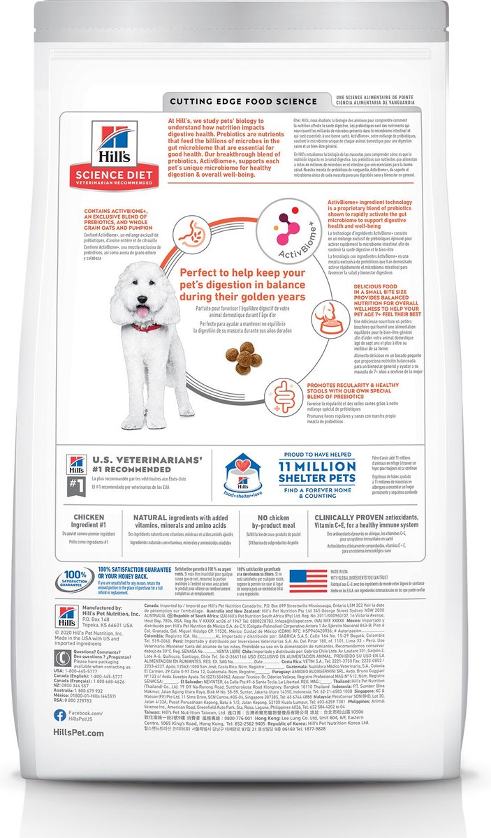 Hill's Science Diet Adult 7+ Perfect Digestion Small Bites Chicken Dry Dog Food, 5.44-kg bag